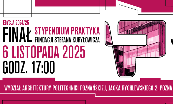 Fundacja im. Stefana Kuryłowicza wraz z Wydziałem Architektury Politechniki Poznańskiej zapraszają na uroczysty Finał Stypendium PRAKTYKA Edycji 2024/25, który odbędzie się w dniu 6 listopada br. o godz. 17:00 w Poznaniu przy ul. Jacka Rychlewskiego 2.