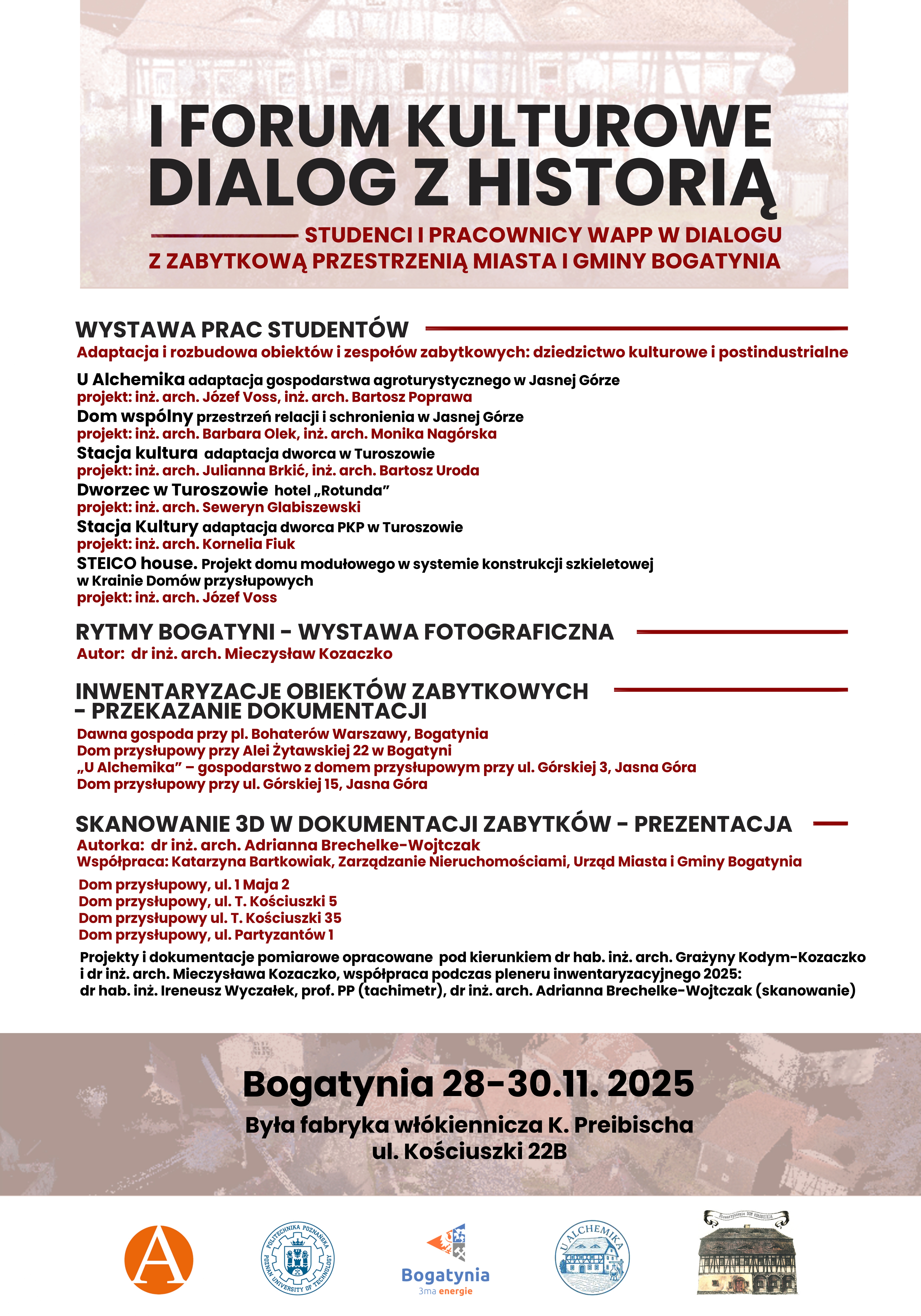 W dniach 28–30 listopada 2025 spotkamy się w Bogatyni, aby wspólnie analizować, interpretować i prezentować lokalne dziedzictwo architektoniczne oraz kulturowe.